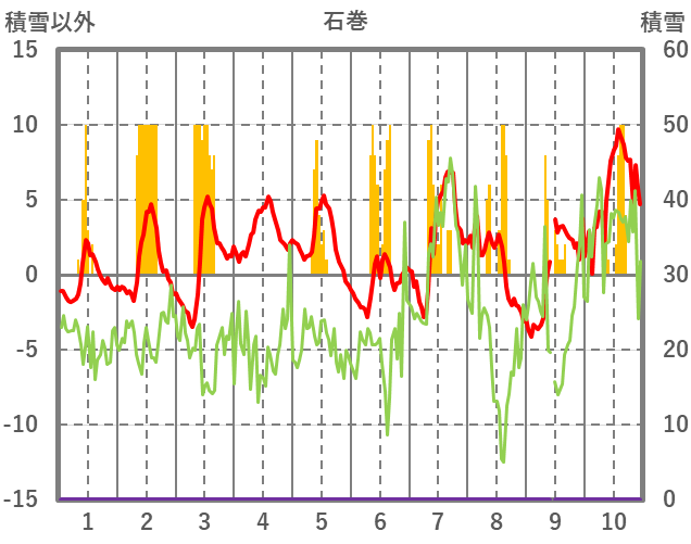| 日 | 時 | 気温 | 降水 | 風向/風速 | 日照 | 積雪 | 降雪 |