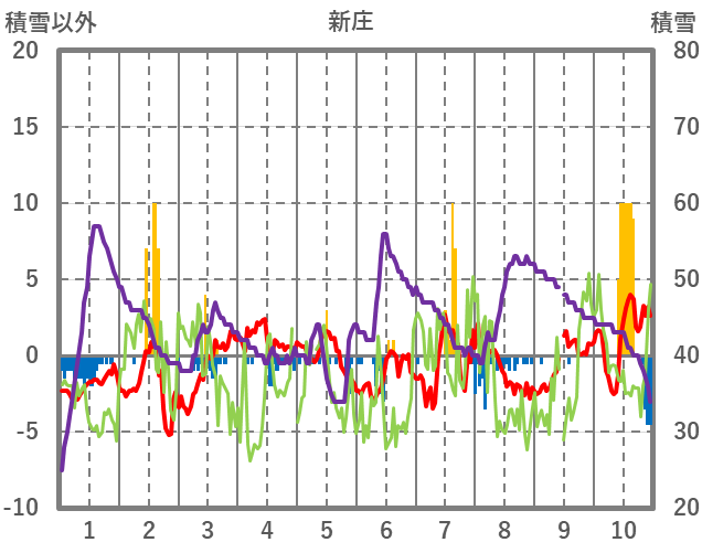 | 日 | 時 | 気温 | 降水 | 風向/風速 | 日照 | 積雪 | 降雪 |