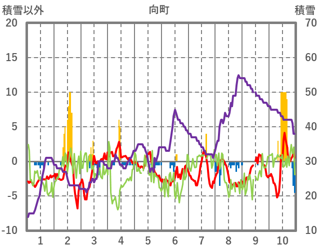 | 日 | 時 | 気温 | 降水 | 風向/風速 | 日照 | 積雪 | 降雪 |