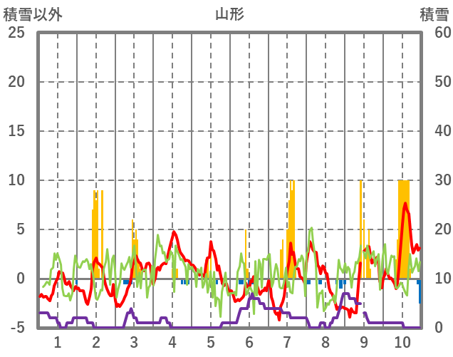 | 日 | 時 | 気温 | 降水 | 風向/風速 | 日照 | 積雪 | 降雪 |