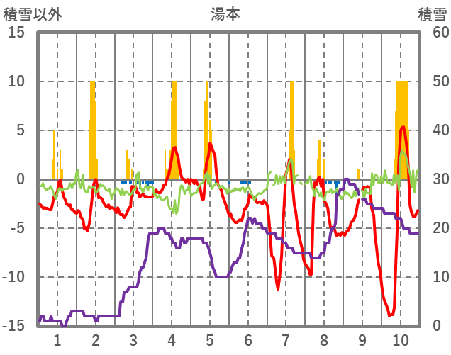 | 日 | 時 | 気温 | 降水 | 風向/風速 | 日照 | 積雪 | 降雪 |
