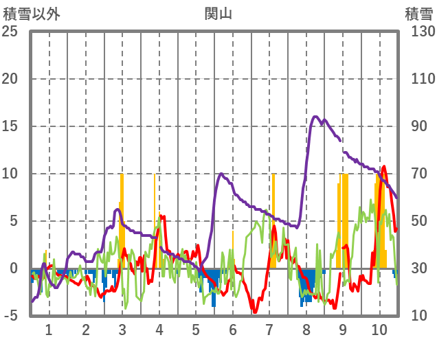 | 日 | 時 | 気温 | 降水 | 風向/風速 | 日照 | 積雪 | 降雪 |