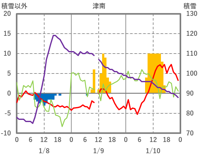 | 日 | 時 | 気温 | 降水 | 風向/風速 | 日照 | 積雪 | 降雪 |