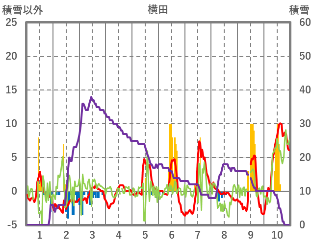 | 日 | 時 | 気温 | 降水 | 風向/風速 | 日照 | 積雪 | 降雪 |