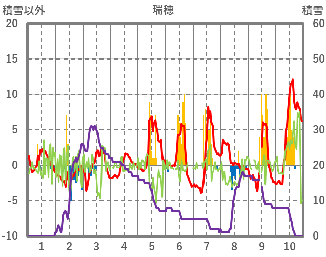 | 日 | 時 | 気温 | 降水 | 風向/風速 | 日照 | 積雪 | 降雪 |