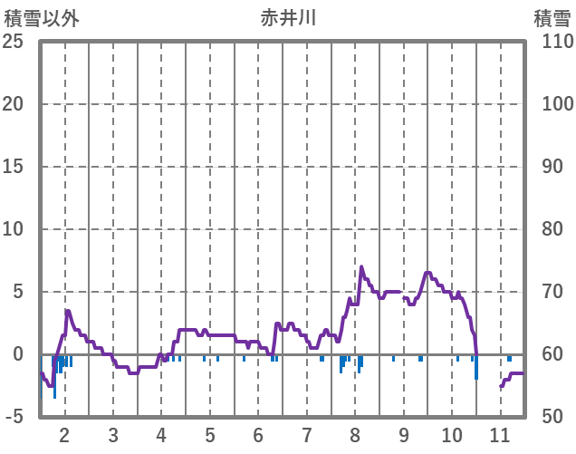 | 日 | 時 | 気温 | 降水 | 風向/風速 | 日照 | 積雪 | 降雪 |