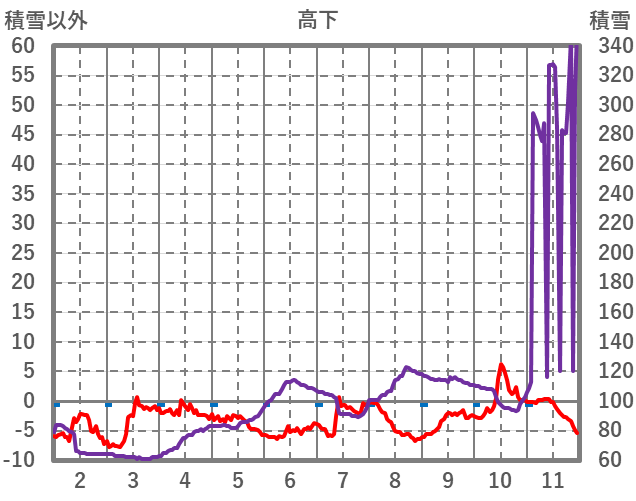 | 日 | 時 | 気温 | 降水 | 風向/風速 | 日照 | 積雪 | 降雪 |