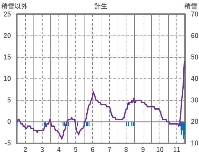 | 日 | 時 | 気温 | 降水 | 風向/風速 | 日照 | 積雪 | 降雪 |
