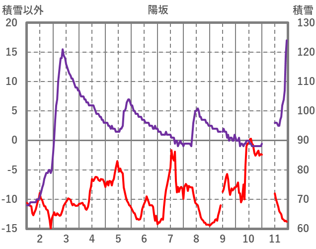 | 日 | 時 | 気温 | 降水 | 風向/風速 | 日照 | 積雪 | 降雪 |