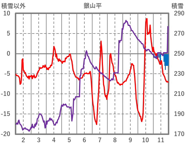 | 日 | 時 | 気温 | 降水 | 風向/風速 | 日照 | 積雪 | 降雪 |