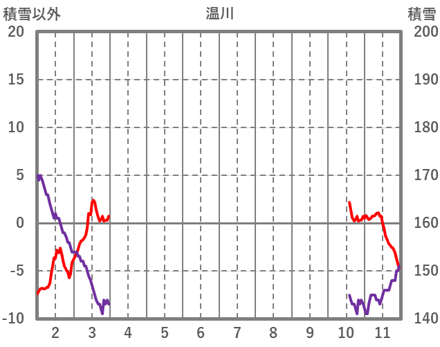 | 日 | 時 | 気温 | 降水 | 風向/風速 | 日照 | 積雪 | 降雪 |