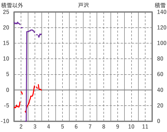 | 日 | 時 | 気温 | 降水 | 風向/風速 | 日照 | 積雪 | 降雪 |