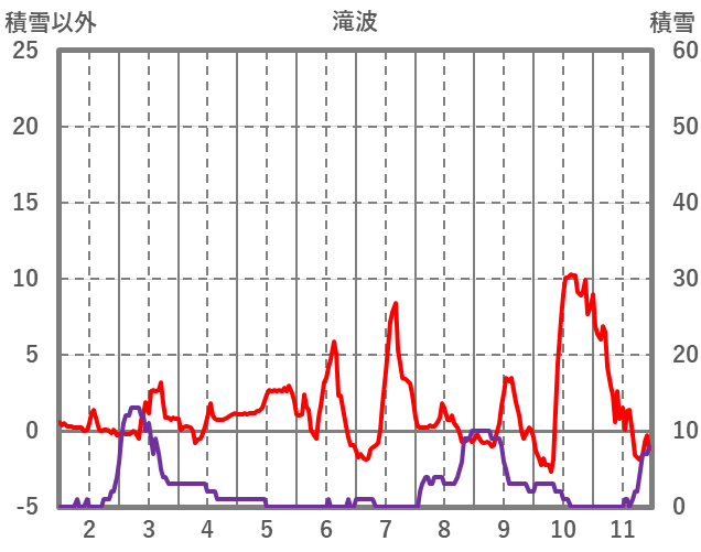 | 日 | 時 | 気温 | 降水 | 風向/風速 | 日照 | 積雪 | 降雪 |