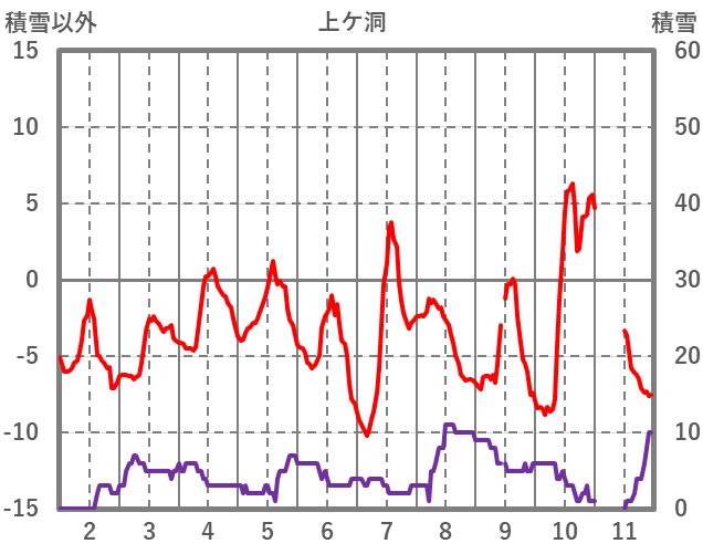 | 日 | 時 | 気温 | 降水 | 風向/風速 | 日照 | 積雪 | 降雪 |