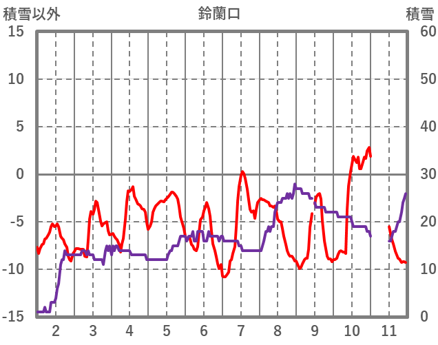 | 日 | 時 | 気温 | 降水 | 風向/風速 | 日照 | 積雪 | 降雪 |