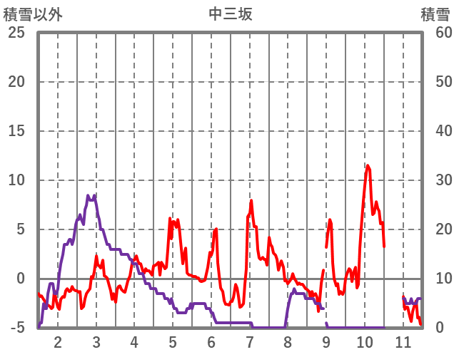 | 日 | 時 | 気温 | 降水 | 風向/風速 | 日照 | 積雪 | 降雪 |