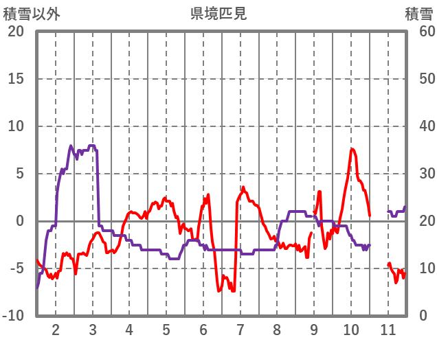| 日 | 時 | 気温 | 降水 | 風向/風速 | 日照 | 積雪 | 降雪 |