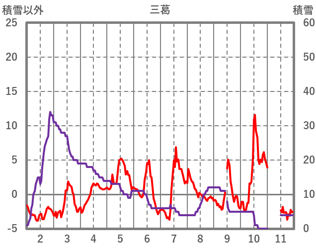 | 日 | 時 | 気温 | 降水 | 風向/風速 | 日照 | 積雪 | 降雪 |