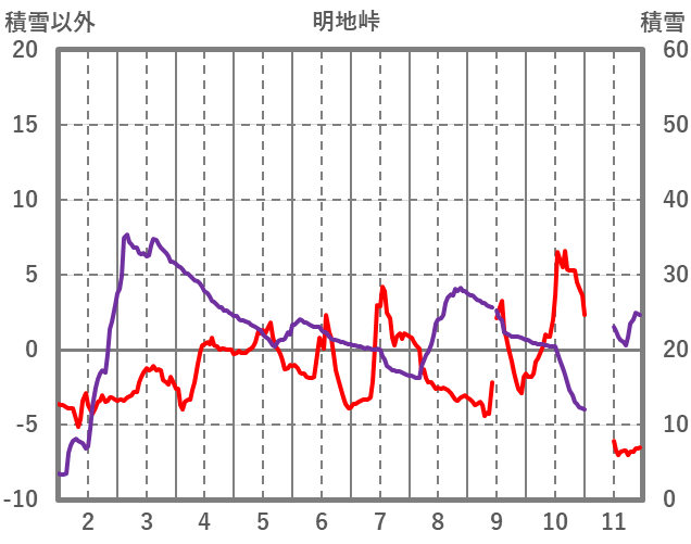| 日 | 時 | 気温 | 降水 | 風向/風速 | 日照 | 積雪 | 降雪 |