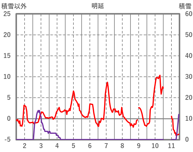 | 日 | 時 | 気温 | 降水 | 風向/風速 | 日照 | 積雪 | 降雪 |