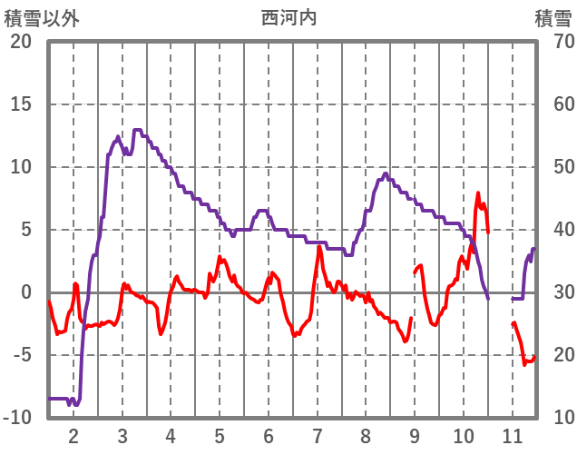 | 日 | 時 | 気温 | 降水 | 風向/風速 | 日照 | 積雪 | 降雪 |