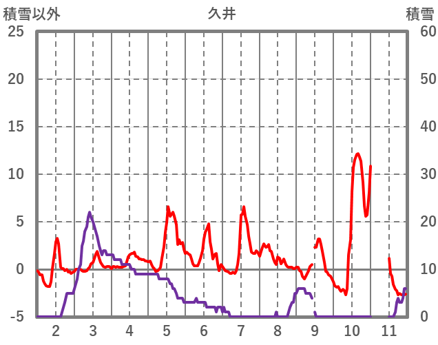 | 日 | 時 | 気温 | 降水 | 風向/風速 | 日照 | 積雪 | 降雪 |