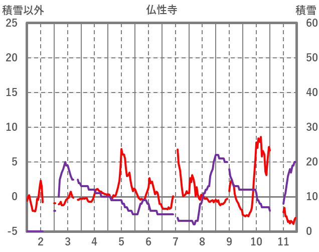 | 日 | 時 | 気温 | 降水 | 風向/風速 | 日照 | 積雪 | 降雪 |
