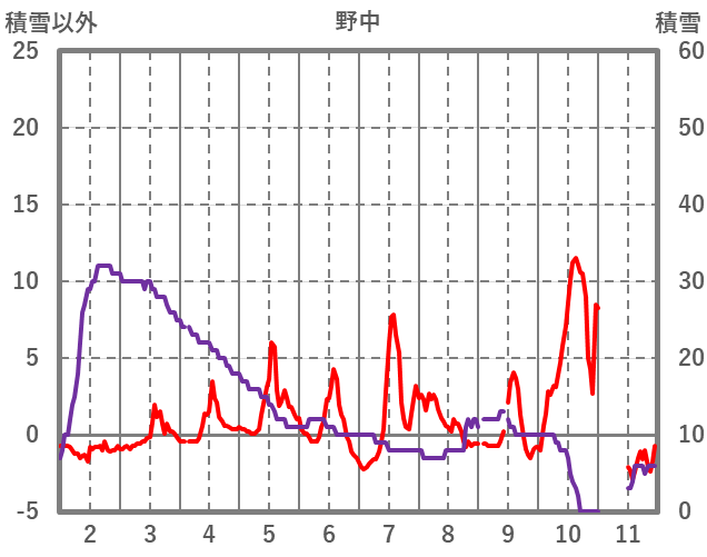 | 日 | 時 | 気温 | 降水 | 風向/風速 | 日照 | 積雪 | 降雪 |