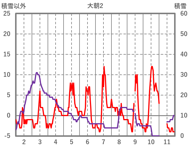 | 日 | 時 | 気温 | 降水 | 風向/風速 | 日照 | 積雪 | 降雪 |