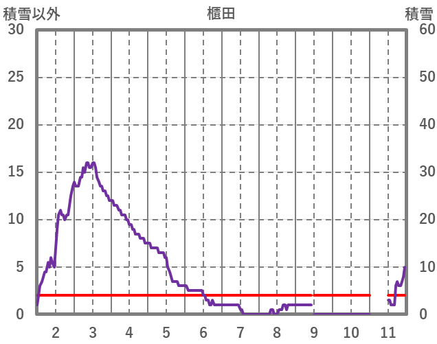 | 日 | 時 | 気温 | 降水 | 風向/風速 | 日照 | 積雪 | 降雪 |