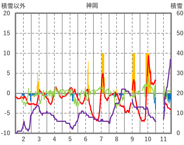 | 日 | 時 | 気温 | 降水 | 風向/風速 | 日照 | 積雪 | 降雪 |