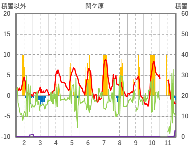 | 日 | 時 | 気温 | 降水 | 風向/風速 | 日照 | 積雪 | 降雪 |