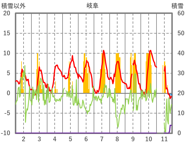 | 日 | 時 | 気温 | 降水 | 風向/風速 | 日照 | 積雪 | 降雪 |