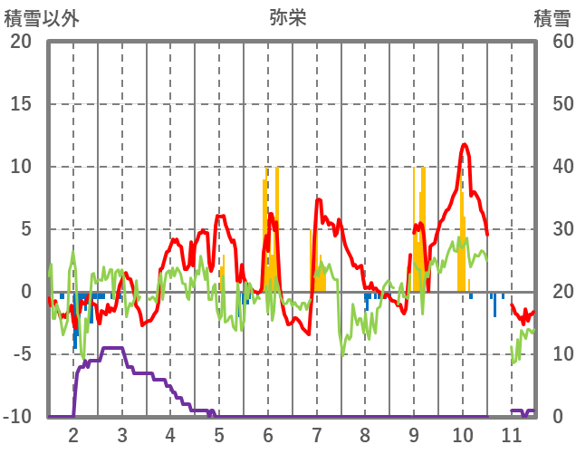 | 日 | 時 | 気温 | 降水 | 風向/風速 | 日照 | 積雪 | 降雪 |