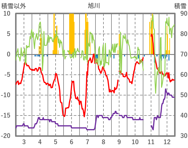| 日 | 時 | 気温 | 降水 | 風向/風速 | 日照 | 積雪 | 降雪 |
