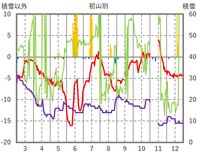 | 日 | 時 | 気温 | 降水 | 風向/風速 | 日照 | 積雪 | 降雪 |
