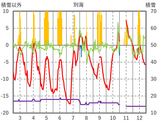 | 日 | 時 | 気温 | 降水 | 風向/風速 | 日照 | 積雪 | 降雪 |