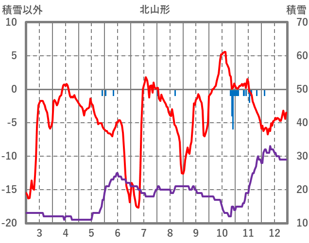 | 日 | 時 | 気温 | 降水 | 風向/風速 | 日照 | 積雪 | 降雪 |