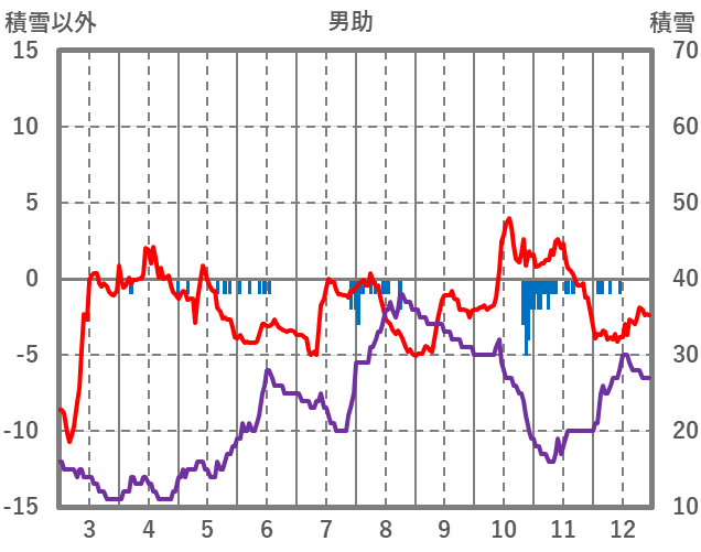 | 日 | 時 | 気温 | 降水 | 風向/風速 | 日照 | 積雪 | 降雪 |