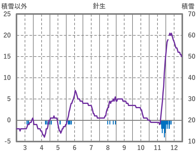 | 日 | 時 | 気温 | 降水 | 風向/風速 | 日照 | 積雪 | 降雪 |