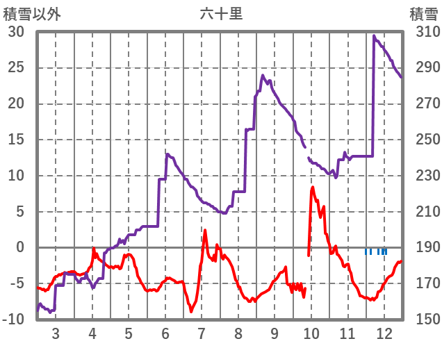 | 日 | 時 | 気温 | 降水 | 風向/風速 | 日照 | 積雪 | 降雪 |