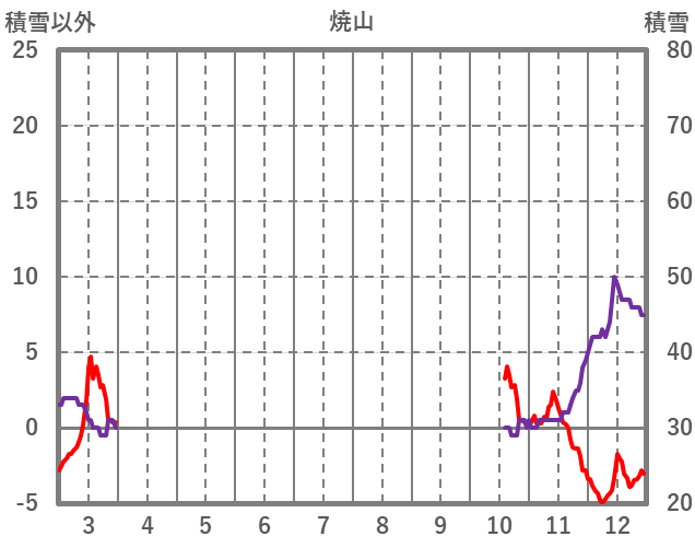 | 日 | 時 | 気温 | 降水 | 風向/風速 | 日照 | 積雪 | 降雪 |