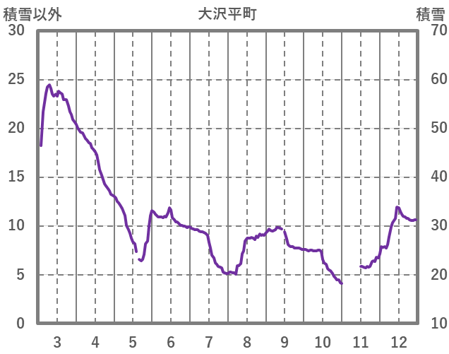 | 日 | 時 | 気温 | 降水 | 風向/風速 | 日照 | 積雪 | 降雪 |