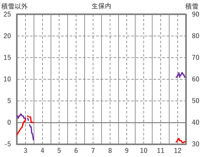 | 日 | 時 | 気温 | 降水 | 風向/風速 | 日照 | 積雪 | 降雪 |