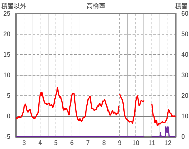 | 日 | 時 | 気温 | 降水 | 風向/風速 | 日照 | 積雪 | 降雪 |