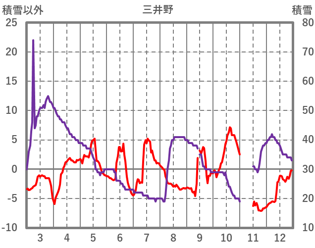 | 日 | 時 | 気温 | 降水 | 風向/風速 | 日照 | 積雪 | 降雪 |