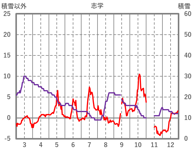 | 日 | 時 | 気温 | 降水 | 風向/風速 | 日照 | 積雪 | 降雪 |