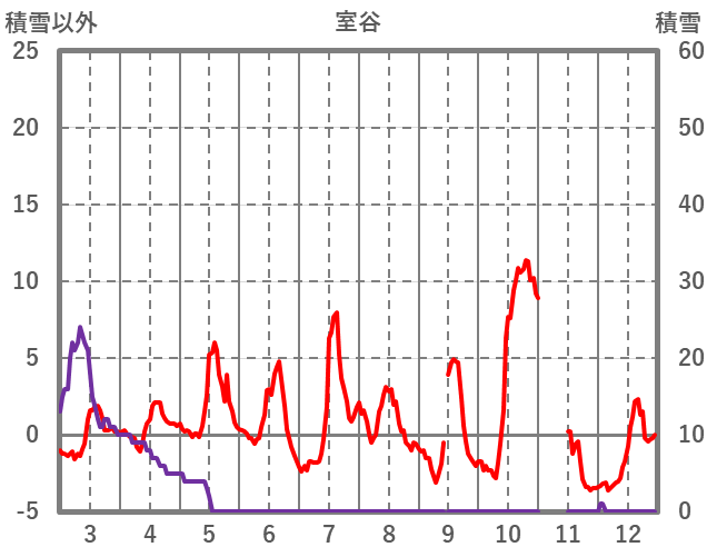 | 日 | 時 | 気温 | 降水 | 風向/風速 | 日照 | 積雪 | 降雪 |