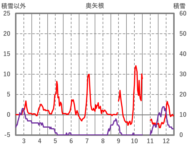 | 日 | 時 | 気温 | 降水 | 風向/風速 | 日照 | 積雪 | 降雪 |