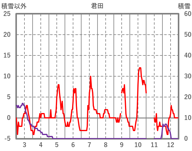 | 日 | 時 | 気温 | 降水 | 風向/風速 | 日照 | 積雪 | 降雪 |